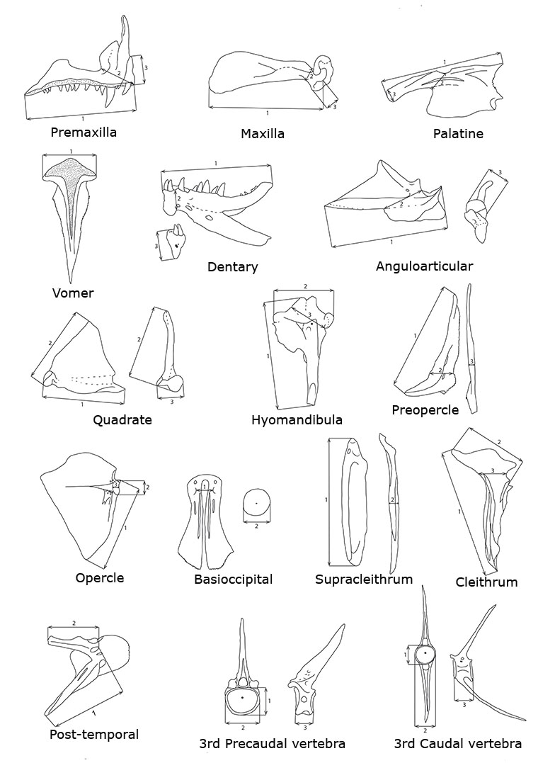 FIGURE 2| Lutjanus argentiventris bone measurements.