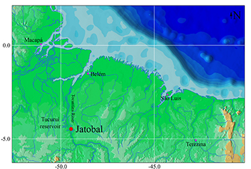 FIGURE 6 | Map of Jatobal localization (red dot) in the rio Tocantins, type locality of Rhyacoglanis rapppydanielae, currently flooded by Tucuruí reservoir, state of Pará, Brazil. Pink dots = state capitals.