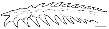 FIGURE 2| Rhyacoglanis varii pectoral-fin spine, paratype, MZUEL 6039, 55.5 mm SL. Scale bar = 1.0 mm.