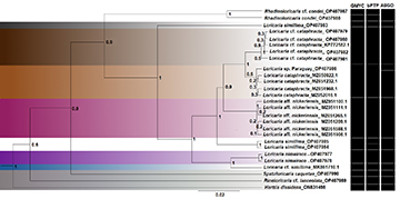 bPTP analysis supported Loricaria nimairaco as a different lineage (species) from the remaining Loricaria included here (Fig. 10 and S1), including divergence from Loricaria cf. simillima MK861710.1, which is more related to the former. The same result was obtained through GMYC (S2) and ABGC (S3) (Fig. 10). Through species delimitation analyses included here, there were only three differences: bPTP found L. simillima OP407984 and OP407985 as different species (Fig. 10; S1), while GMYC and ABGC found them as a single lineage (Tab. 3; S2); on the other hand, through bPTP and GMYC, Rhadinoloricariacondei OP407988 and Rhadinoloricaria cf. condei OP407987 were found as separate species (Fig. 10; S1–S2); ABGD found Loricaria sp. Paraguay as a separate lineage from L. cataphracta (S3). Thus, the main target of the present study, L. nimairaco, was invariably found as a different species further supporting the presence of a new species at the upper Amazon River in Colombia.