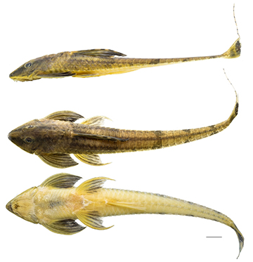 FIGURE 4| Holotype of Loricaria nickeriensis, ZMA-PISC 107561, 116.4 mm SL, Suriname, Nickerie District, Fallawatra River, 5 km south-southwest of Stondansie falls. Photos: Mark Allen, ACSImagebase.
