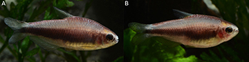Pastana MNL, Dagosta FCP, Esguícero ALH. A new sexually dichromatic miniature Hyphessobrycon (Teleostei: Characiformes: Characidae) from the rio Formiga, upper rio Juruena basin, Mato Grosso, Brazil, with a review of sexual dichromatism in Characiformes. J Fish Biol. 2017; 91(5):1301–18. https://doi.org/10.1111/jfb.13449