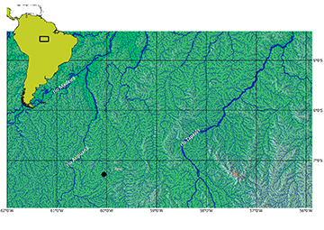 FIGURE 3| Map of southern Amazon basin indicating the type-locality of Cyphocharax orion (black circle) in the rio Juma near the town of Apuí, Amazonas, Brazil.