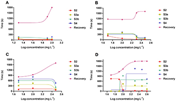 Anesthetic induction and recovery protocol. Sedation (S2) with eugenol 50 mg L-1 was achieved in 23.5 ± 6.6 s and anesthesia (S4) in 205.8 ± 32.3 s, with a recovery time of 533.5 ± 117.1 s.