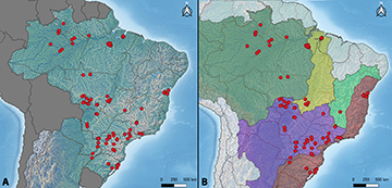 | hahni | Iguaçu River, Capanema, PR, Brazil | 25°38’18.7"S | 54°28’01.7"W | Paraná | 58♀♂ | 112 | Simple | 12m + 20sm + 22st + 4a |