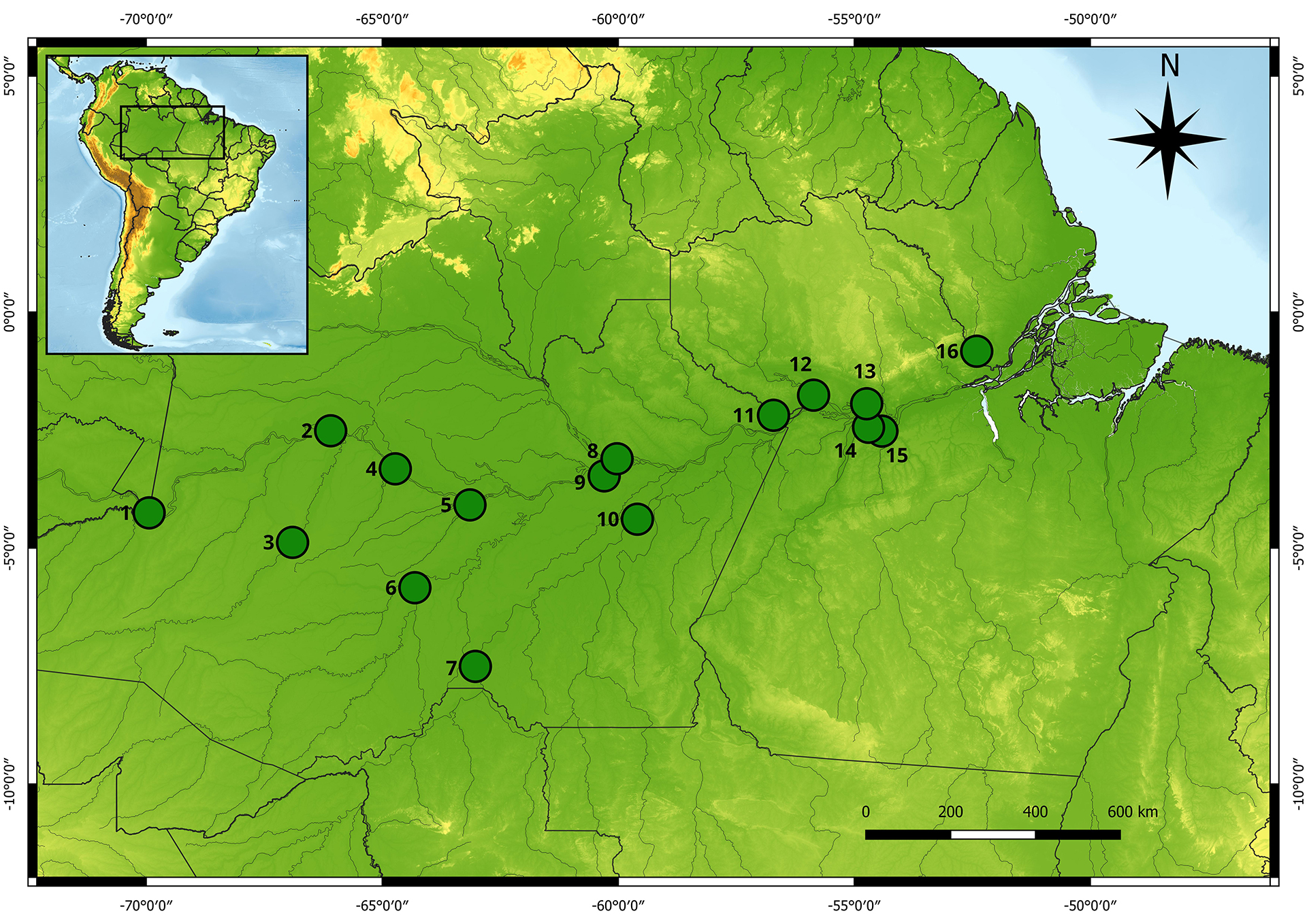 4. Tefé (W) | 3°19’14.62"S 64°43’24.90"W | 30 | 10 | 0.664 +/- 0.090 | 0.0048 +/- 0.0029 | -0.87780 | -2.33898 |