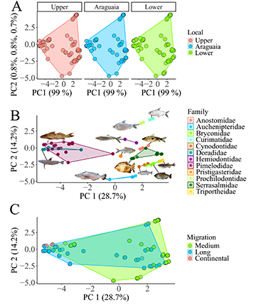 The lack of information about potamodromous fishes in the Tocantins-Araguaia basin raises concerns, because this basin has been subjected to large-scale environmental degradation (Latrubesse et al., 2019; Pelicice et al., 2021; Ferreira et al., 2022); currently, 53 fish species are listed as threatened with extinction, the highest number in the Amazon region (Santana et al., 2021). This scenario is particularly unfavorable to migratory fishes, stressing the need for more information about this group. In this context, the present study investigated taxonomic and functional diversity of potamodromous fishes in the Tocantins-Araguaia basin, with the aim to (i) compile a species list, (ii) examine species richness, composition and functional diversity, and (iii) investigate fish diversity patterns considering spatial, taxonomic, and migration aspects. This is the first broad assessment focused on migratory fishes in this basin, with potential to generate basic information to support fisheries management, environmental planning, and conservation initiatives.